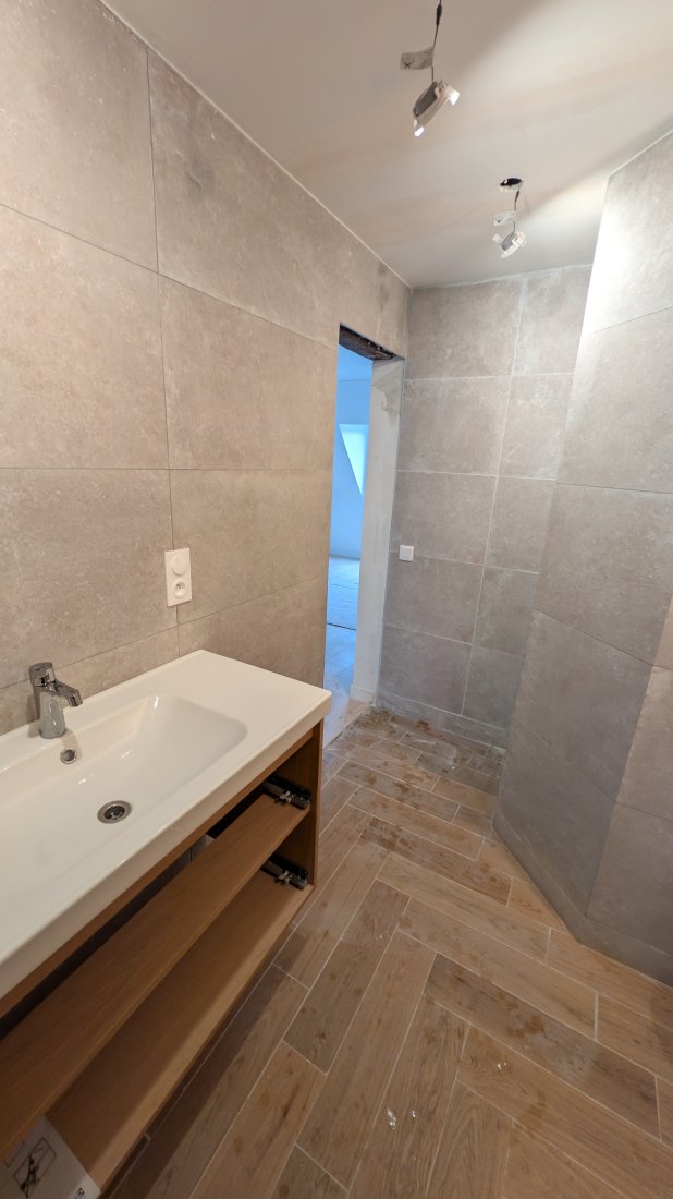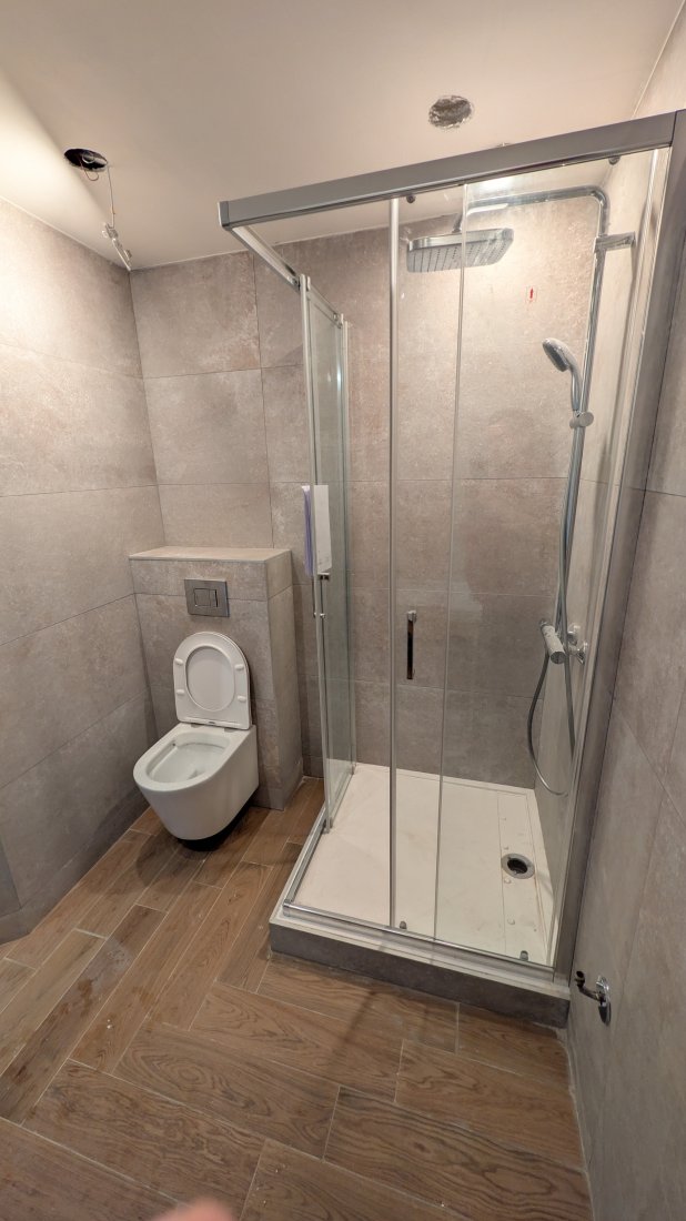Pose du carrelage avec aménagement wc meuble et paroi de douche raccordement en plomberie peinture au plafond